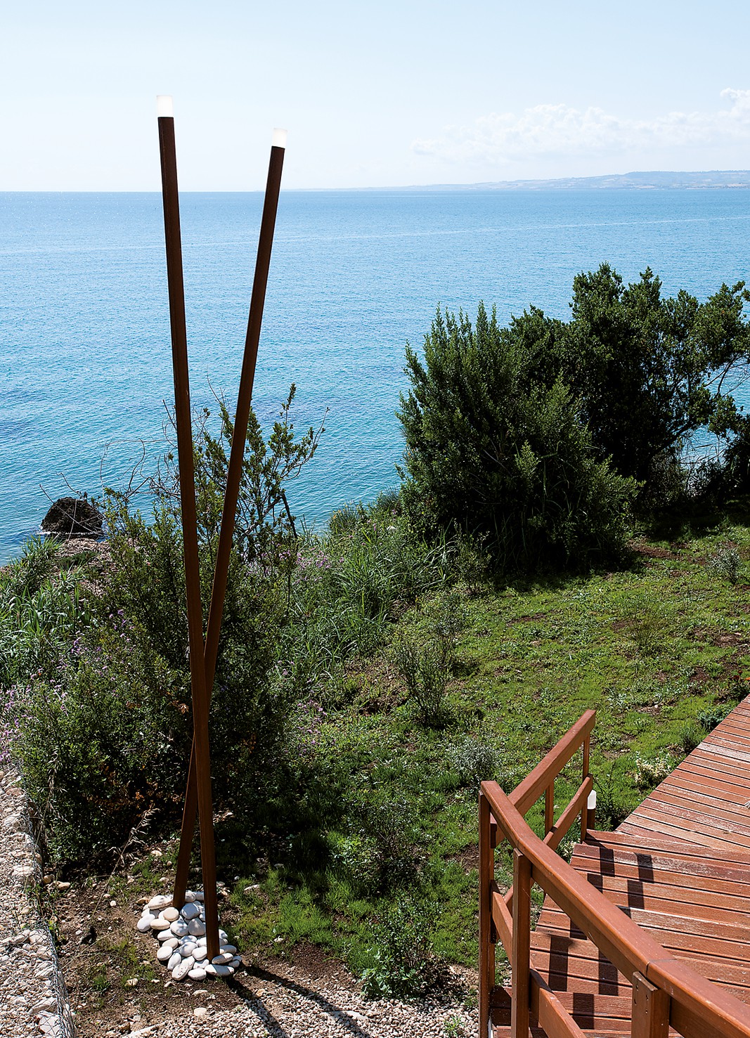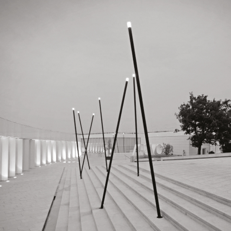 wet location rated light fitting for outdoor use. pole available in cor-ten steel or in powder coated and oxidised aluminium, 500mm/19.7’’ or 5000 mm/196.8’’, with a pole head in sanded polymethyl methacrylate diameter ?80mm/3.1’’, h.100mm/3.9’’, wired with four led sources with different colour combinations. thanks to the special ground anchor, the pole can be installed perpendicularly to the ground or inclined by 10° only 5000mm/196.8’’ version. if exposed to open air, the natural cor-ten steel will become covered in a brown, self-protecting, oxide layer that varies in colour over time, depending on its exposure to the elements. wired with 6050k, 3000k and blue 4x1W led source, with different combinations. 120 50-60Hz power supply included. accessories: ground fixing stake for 500mm/19.7’’ pole and ground anchor for 5000mm/196.8’’ pole. finishes: cor-ten steel, antique brown, night black, scurodivals and silver grey.