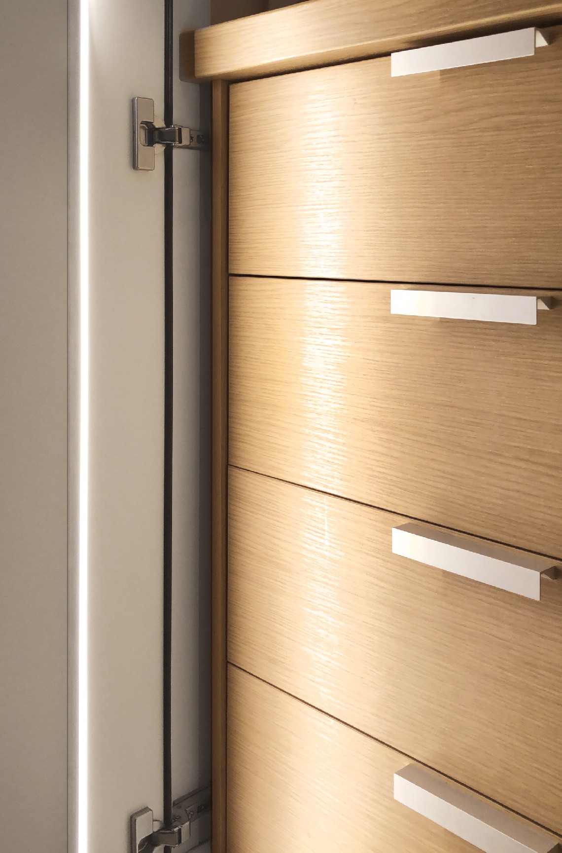 IP20 rated recessed and ceiling light fitting for indoor use. made of 5x20x1010mm/0.2x0.8x39.8" oxidised extruded aluminium. satin polycarbonate diffuser of the same length as the profile. wired with electronic linear source Ra95 25W/m 24V 3000K, dimmable with remote 24Vdc power supply excluded. finishes: matt silver.