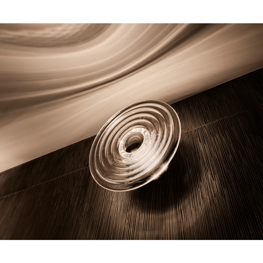 The thickest industrially Pressed glass artefacts designed and engineered to catch and refract light, and to last for ever. Press is a series of heavyweight grooved lighting, vases, bowls and candleholders made of fat, chunky coils of pure and clear transparent glass.