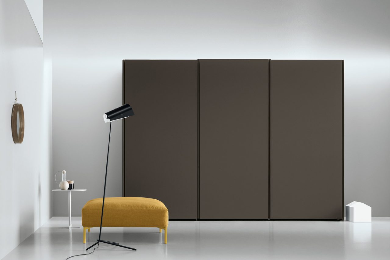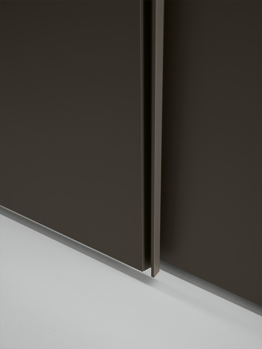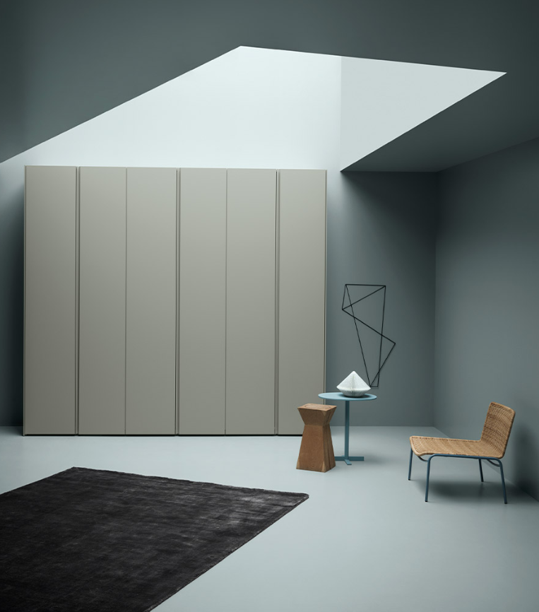 Aria is a wardrobe and walk-in wardrobe system that allows a combination of different units. The structure, with closed or through sides in Black or Bronze aluminium, can be closed by sliding or hinged doors in a choice of materials, also in aluminium with flush glass. Wardrobes and walk-in wardrobes can be fitted with suspended or floor-standing drawer units, storage racks, glass and aluminium pull-out shelves, boxes and customised accessory holders.