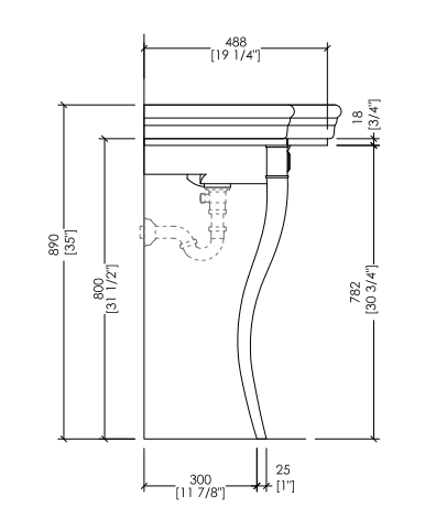 The curved form of the legs emphasizes the essence of the eighteenth-century sinuous lines and revisits them in a light contemporary spirit. Made of fused aluminium with turned brass elements, the bearing structure is available in chrome, light gold or polished nickel finishes. It is completed with the New Etoile porcelain basin.