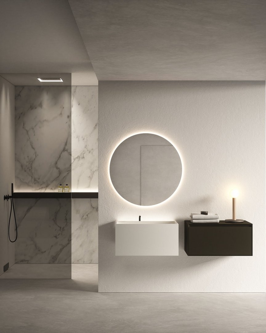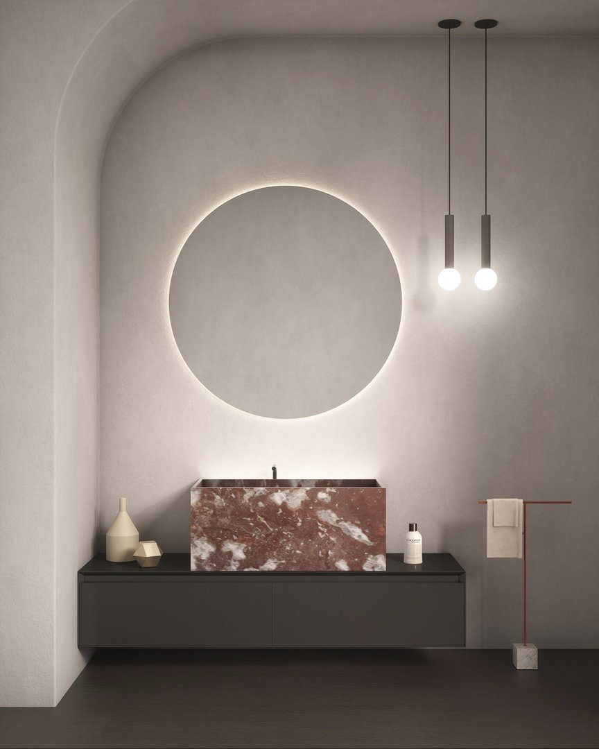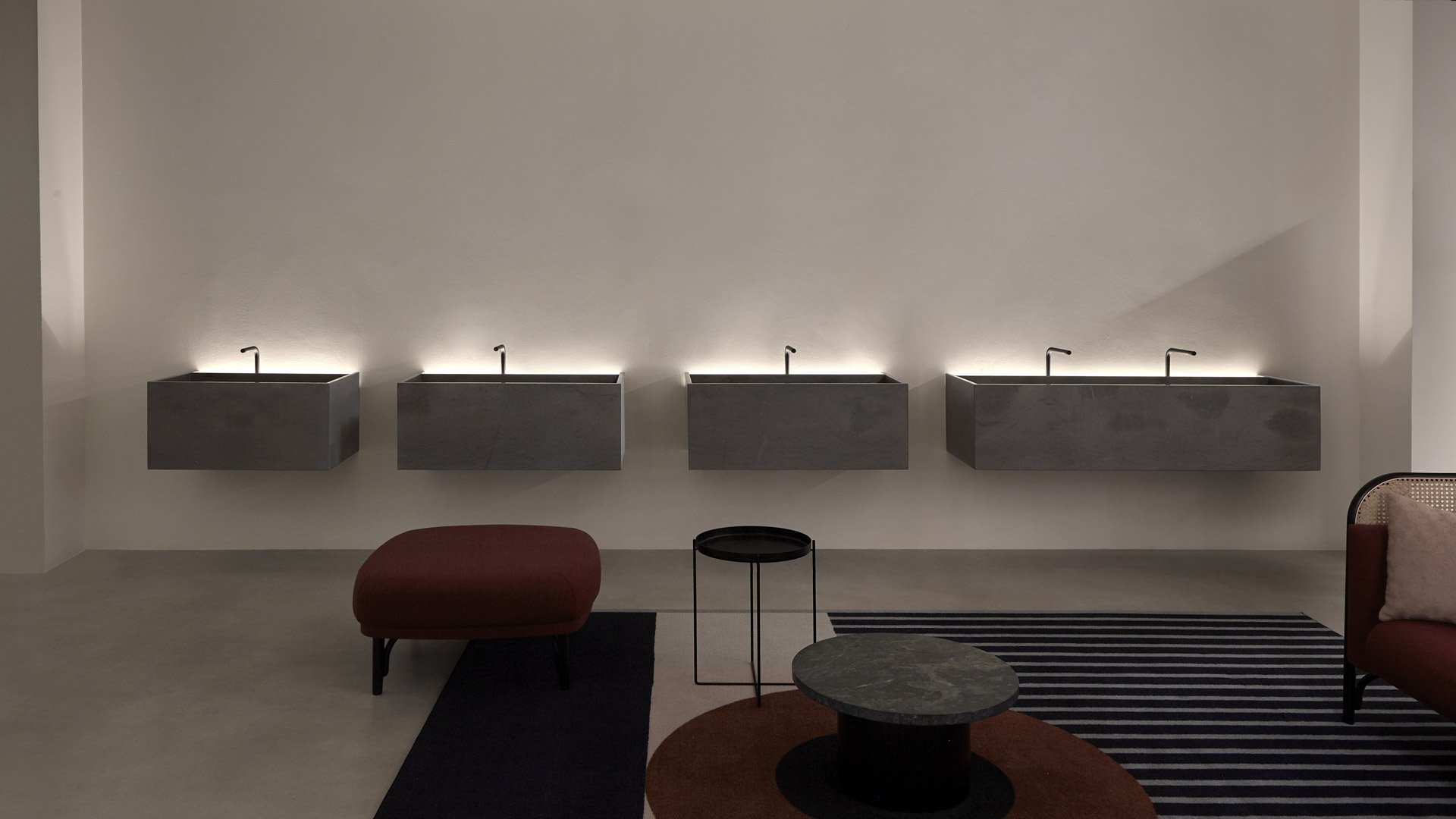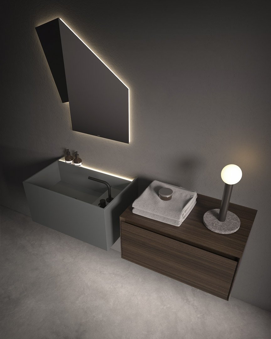 Le forme sono squadrate, le linee ortogonali disegnano geometrie pure e definiscono volumi con funzionalità diverse, lo spazio viene utilizzato al meglio grazie a proporzioni equilibrate, spessori sottili e altezze misurate. Le dimensioni disponibili e le combinazioni di configurazione rendono unico ogni lavabo. La pietra è la grande protagonista di questi monoliti, la forma di MyStreet nasce dalla conoscenza del materiale e dal lavoro dell’uomo per dargli una forma contemporanea. La collezione prende vita dalla serie di top già presentata da antoniolupi e proprio per questo oltre al bacino del lavaggio si predispone per contenere oggetti d’uso quotidiano che trovano posto in uno spazio dedicato e illuminato vicino alla parte.
