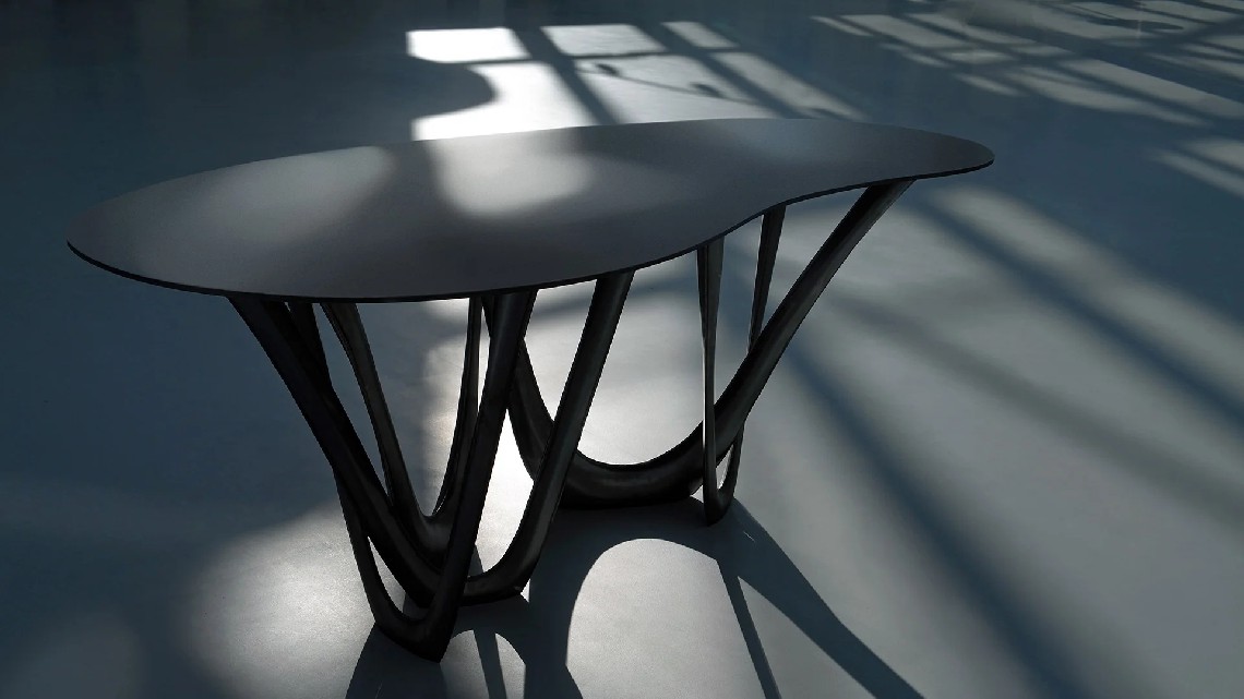 We use parametric design software to generate G-Table form. Modifying a few variables lets us create a miniature model as well as a huge pavilion. Delicate structure of table legs may become stocky and dominating. All those factors cause G-Table to be not only an effect of the process, but also a process itself. G-Table’s base consists of parabolic forms. Made with FiDU technology, it reminds of vines or tree roots. Nature symbolizes a constant changeability and harmony that comes out of it. Diverse structure of G-Table refers to both natural forms and processes.